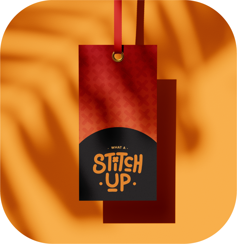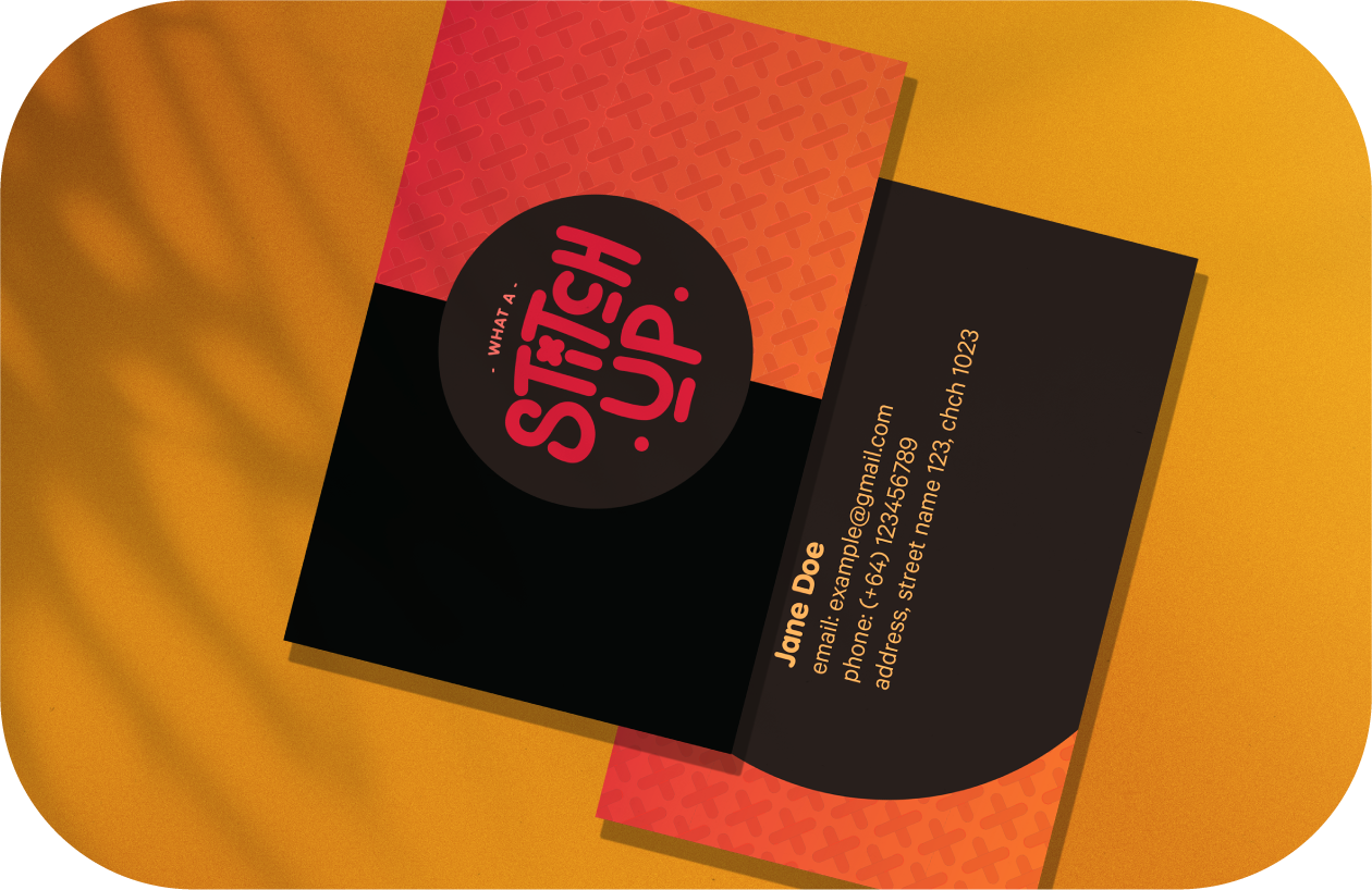 Brand identity assets • Logo • Fonts • Colours • Stationary design for print • Product tags • Art market signage What a stitch up is a NZ based crochet business. The logo was made to be playful with handmade elements to reflect the brand. Logo tags are coloured to match the crochet creations and the various colours they come in